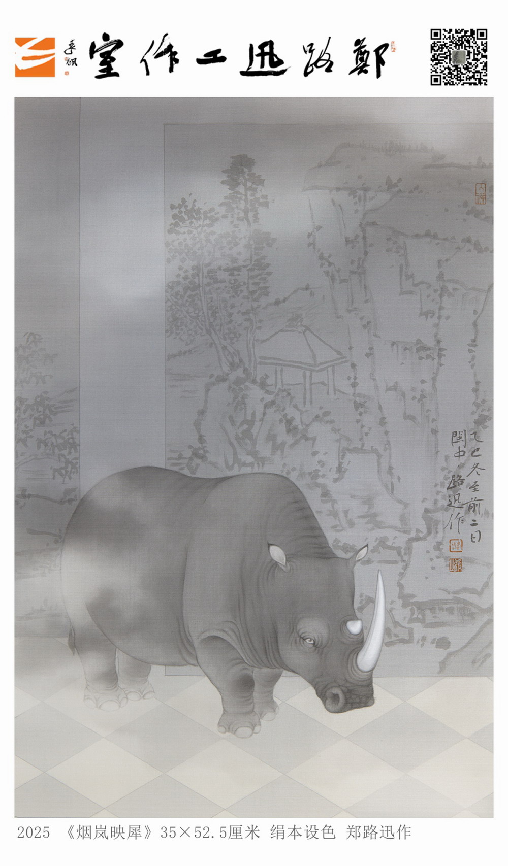 2025 《烟岚映犀》35×52.5厘米 绢本设色 郑路迅作